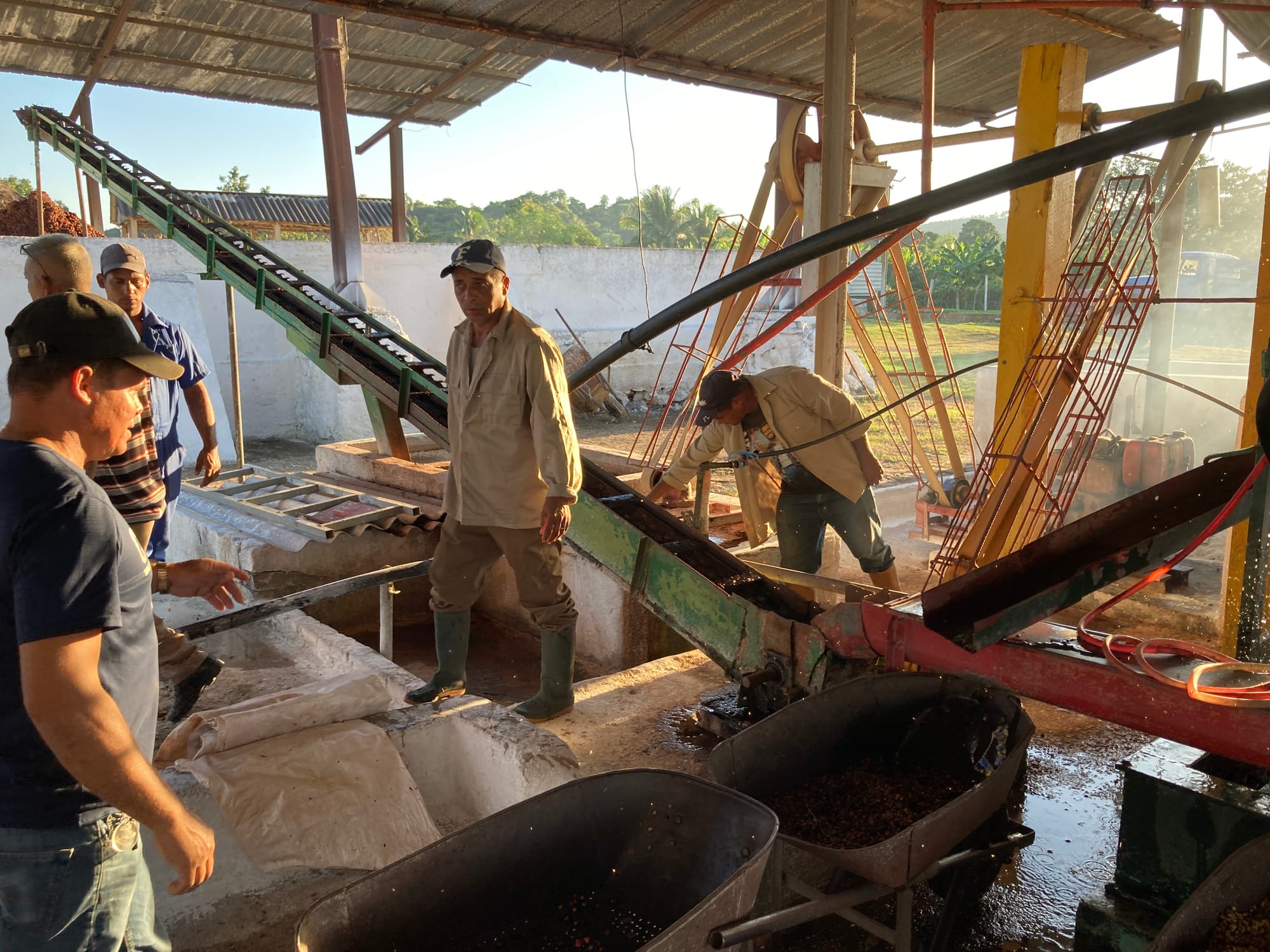 From these farms and many others, coffee is transported to the Los Negros washing station in Cuba’s Santiago de Cuba province. One of 22 stations in the country, this facility processes 64% of Cuba’s current coffee production. Los Negros uses a wet process to de-pulp coffee cherries and is experimenting with fermentation on robusta micro-lots in collaboration with the University of Santiago to elevate quality.