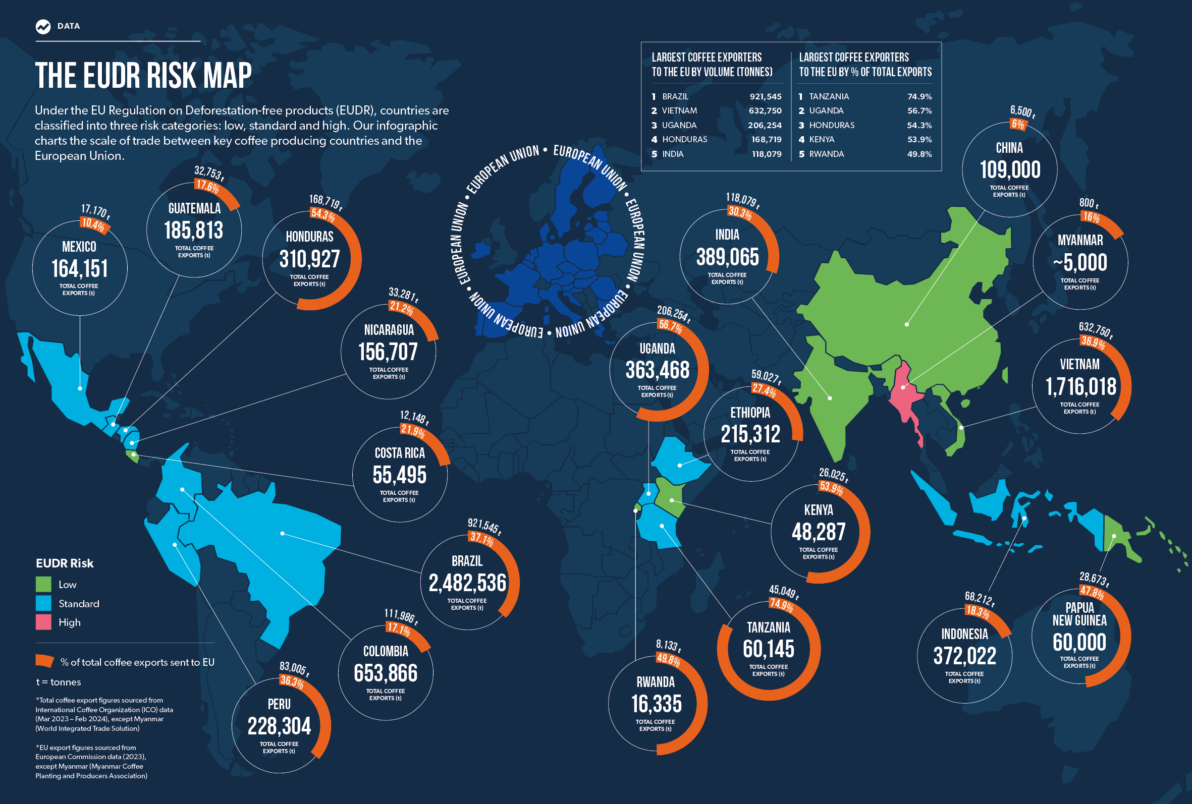 For the global coffee industry, but especially smallholder farmers, the stakes are high. According to the European Commission, the EU accounts for nearly a third of global coffee consumption, importing 2.7 million tonnes of coffee in 2023 from non-EU countries valued at €10.6bn ($2.7bn).
